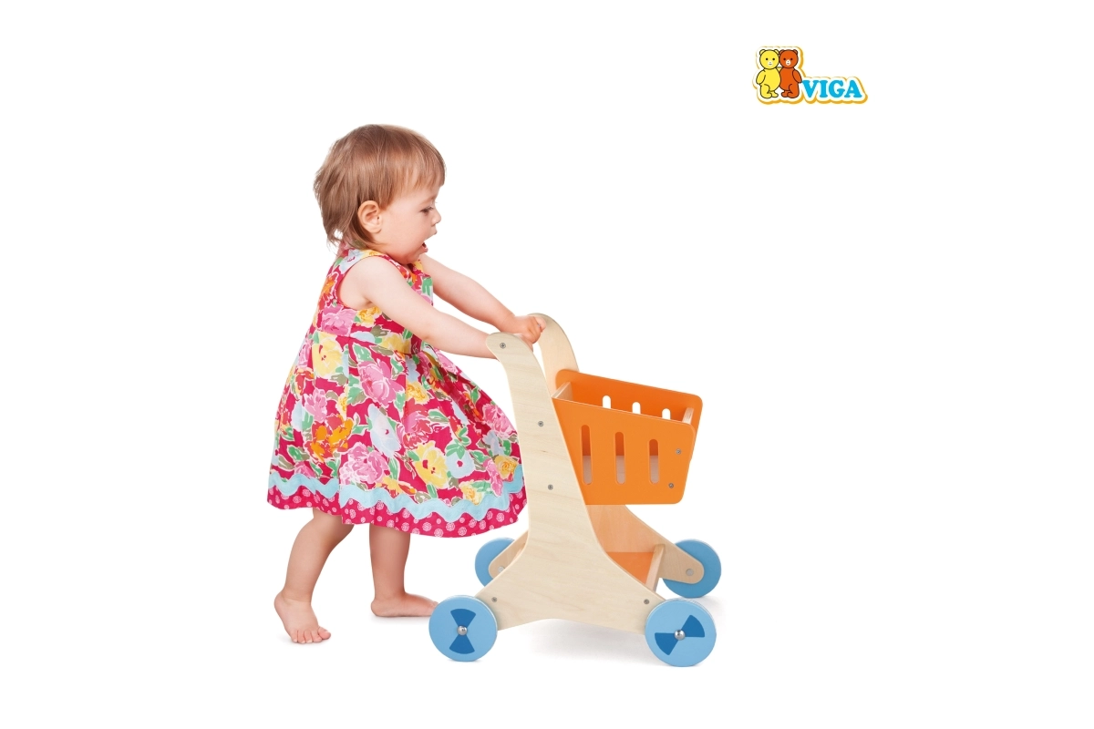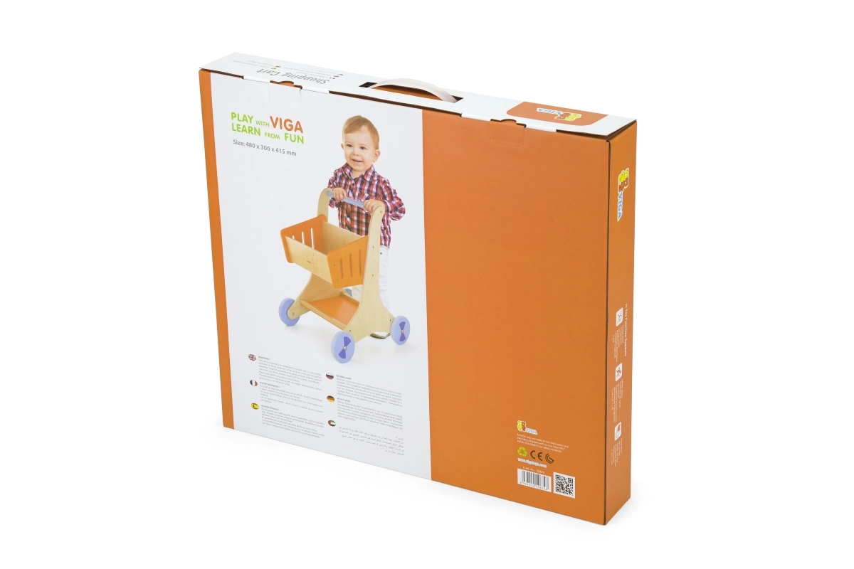 Προσφέρετε στα παιδιά χαρά στην ανακάλυψη με το ξύλινο καρότσι αγορών, ιδανικό για παιχνίδι «μαγαζιού» και για μεταφορά αγαπημένων παιχνιδιών. Χάρη στον ανθεκτικό ξύλινο σκελετό, την άνετη χειρολαβή και τα τέσσερα ομαλά ροδάκια, το καρότσι είναι σταθερό και εύκολο στον χειρισμό ακόμη και για τους μικρότερους.