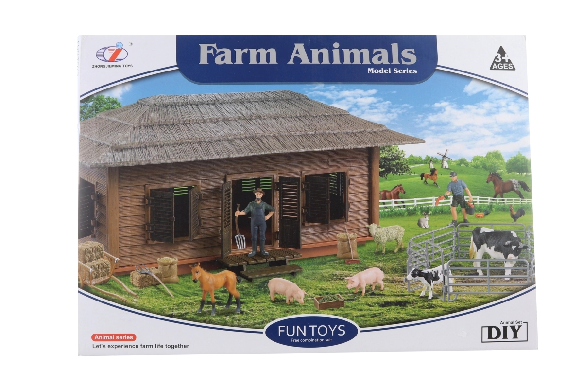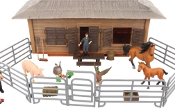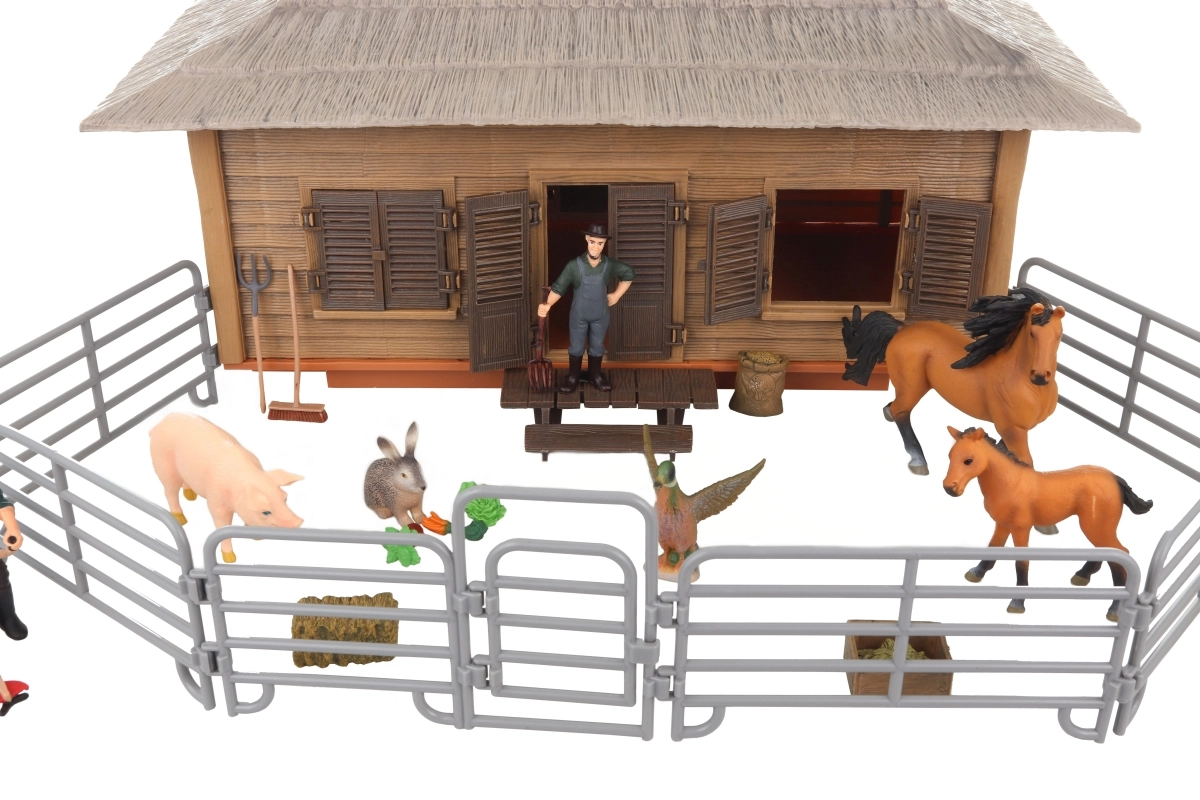 - Στάβλος, περίφραξη, 2 φιγούρες αγροτών, 5 ζωάκια (άλογο, πουλάρι, γουρούνι, πάπια, κουνέλι), αξεσουάρ (π.χ. πιρούνες)