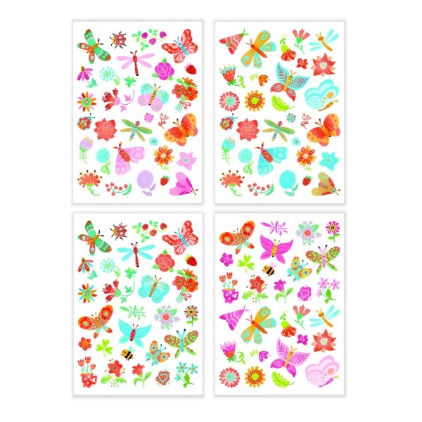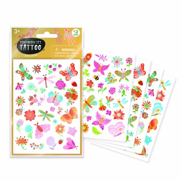 Διακοσμήστε την επιδερμίδα σας με απαλά μοτίβα της φύσης. Αυτό το σετ προσωρινών τατουάζ προσφέρει χρωματιστές πεταλούδες και λουλούδια, εύκολη εφαρμογή σε 30 δευτερόλεπτα και ασφαλή αφαίρεση με σαπούνι ή λαδάκι. Η συσκευασία περιλαμβάνει 4 φύλλα τατουάζ με ανοιξιάτικα μοτίβα, κατάλληλα για παιδιά από 3 ετών.