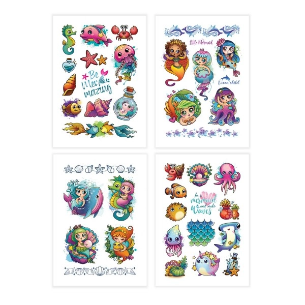 Δείξτε τη δημιουργικότητά σας και την αγάπη σας για τη θαλάσσια ζωή με προσωρινά τατουάζ, ιδανικά για όλες τις ηλικίες. Απλώς κόψτε το σχέδιο, πιέστε το πάνω στο δέρμα και βρέξτε το με νερό. Μετά από 30 δευτερόλεπτα αφαιρέστε εύκολα το χαρτάκι και το τατουάζ θα παραμείνει σταθερά στη θέση του.