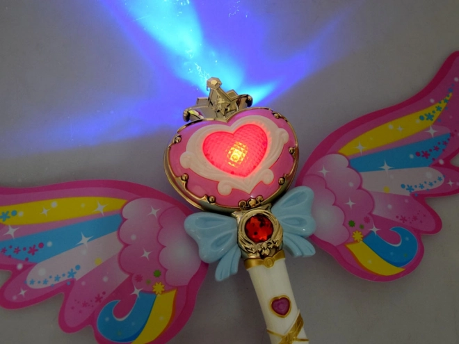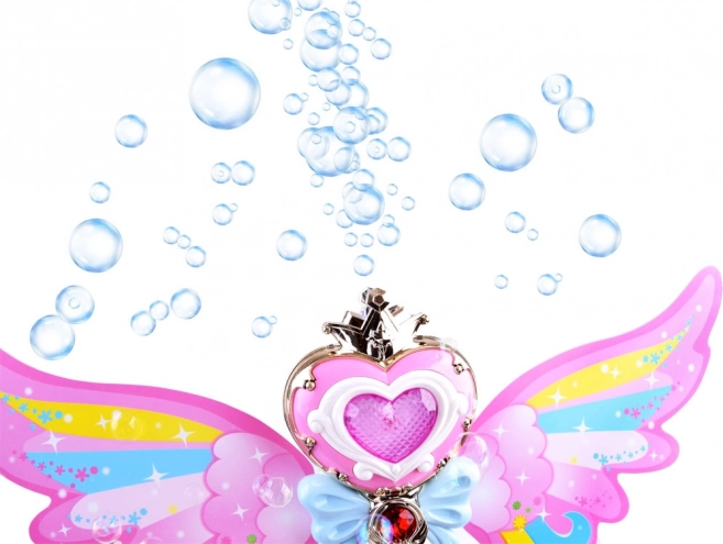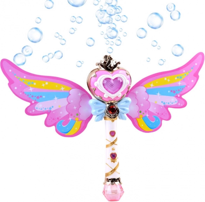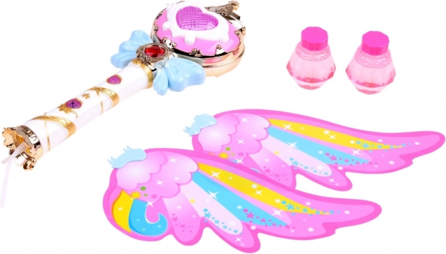 Αυτό το γοητευτικό ραβδί με ουράνια φτερά προσφέρει τη δυνατότητα εκτόξευσης πολύχρωμων σαπουνόφουσκων που θα χαροποιήσουν κάθε παιδί. Με το πάτημα του κουμπιού ακούγεται χαρούμενη μουσική και το ραβδί φωτίζεται με ζωηρά φώτα.
