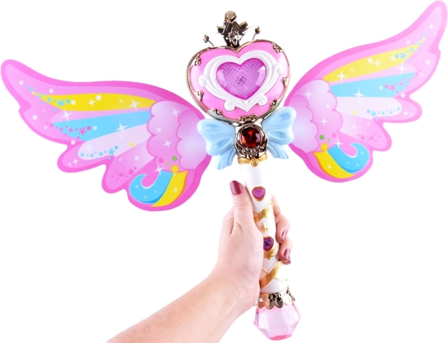 Στο ραβδί μπορούν να προσαρτηθούν πολύχρωμα φτερά που ενισχύουν την εμπειρία του μαγικού παιχνιδιού.