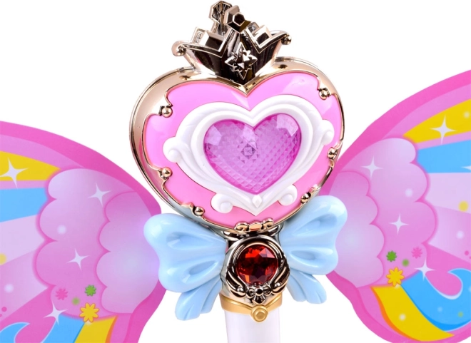 Το σετ περιλαμβάνει επίσης τη δυνατότητα προσάρτησης φτερών, κάτι που κάνει το ραβδί ακόμη πιο μαγευτικό και ελκυστικό για την παιδική φαντασία. Έτσι, τα παιδιά μπορούν να απολαύσουν πλήρως την εμπειρία του μαγικού παιχνιδιού.