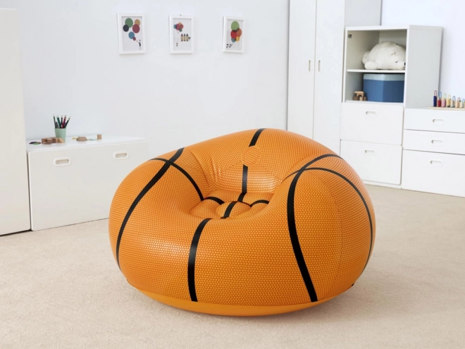 Απολαύστε διασκέδαση και χαλάρωση σε μια άνετη, μαλακή πολυθρόνα που με την εμφάνισή της θυμίζει πιστά μπάλα μπάσκετ. Ταιριάζει τέλεια σε χώρους φίλων του μπάσκετ και χαρίζει μοντέρνο, παιχνιδιάρικο στυλ. Η λεία επιφάνεια καθαρίζεται εύκολα και το ανθεκτικό PVC εξασφαλίζει μεγάλη διάρκεια ζωής και απλή συντήρηση.
