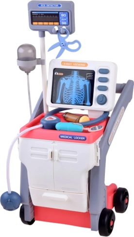 Αυτό το ιατρικό καρότσι είναι κατασκευασμένο εξ ολοκλήρου από υψηλής ποιότητας πλαστικό και έχει σχεδιαστεί για πολύχρωμο και διασκεδαστικό παιχνίδι. Όλα τα αξεσουάρ είναι πιστές απομιμήσεις πραγματικών ιατρικών εργαλείων και διαθέτουν φιλικές φόρμες και χαρούμενα χρώματα.