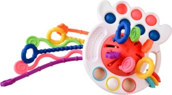 Το ειδικά σχεδιασμένο μασητικό είναι εξοπλισμένο με έξι υφές-χορδές, που κατά το τράβηγμα μέσα από τα ανοίγματα παράγουν διάφορους ήχους και δονήσεις. Αυτή η λειτουργία βοηθά στην εξάσκηση της παιδικής λαβής και αναπτύσσει τις κινητικές δεξιότητες.