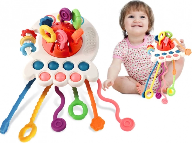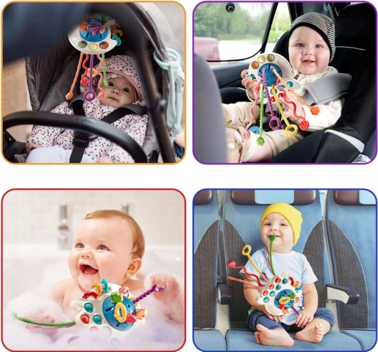 Το παιχνίδι διαθέτει μαλακά αισθησιοκινητικά κουμπιά, που ενθαρρύνουν τον χειρισμό. Τα παιδιά μπορούν να απολαμβάνουν διαφορετικά απτικά ερεθίσματα με τη βοήθεια τριών πλαστικών κρίκων με διαφορετική υφή και επιφάνεια με έντονη υφή από μπιλίτσες.