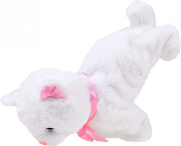 Ένα χαριτωμένο και διαδραστικό λούτρινο γατάκι θα γίνει ο καλύτερος φίλος κάθε παιδιού. Με άγγιγμα στις πατούσες ή παλαμάκι παράγει γατίσιους ήχους και κάνει ακροβατικές κινήσεις. Το απαλό λευκό γουνάκι, η ροζ κορδέλα, η ροζ μυτούλα και τα χαριτωμένα ματάκια εξασφαλίζουν αγκαλιές και ατελείωτη διασκέδαση.