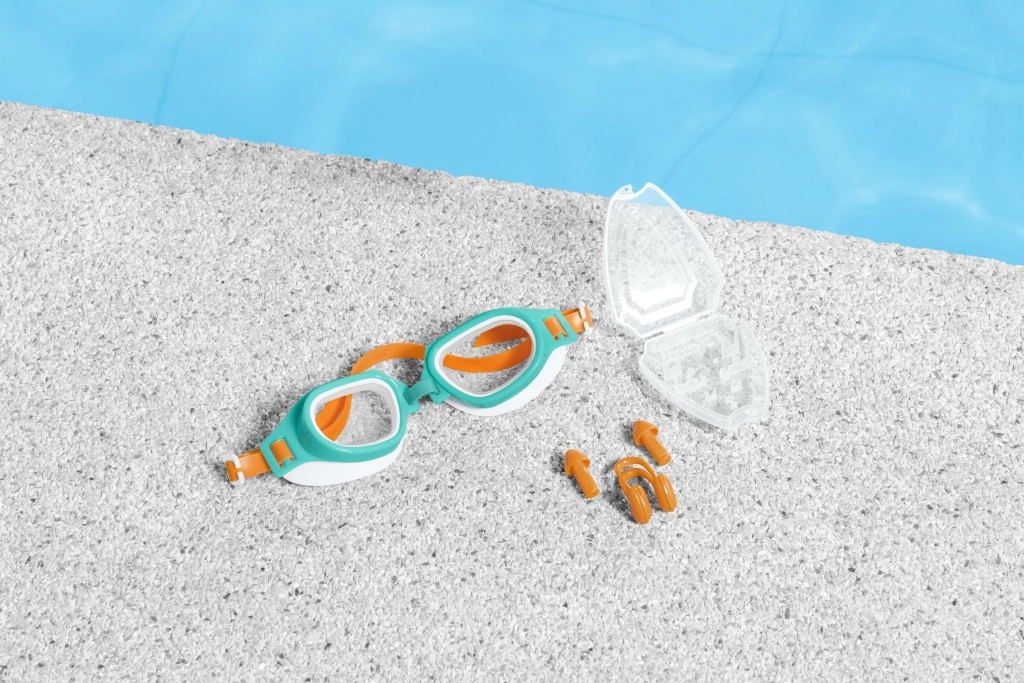 Το σετ περιλαμβάνει μανταλάκι μύτης και μαλακές ωτοασπίδες, σχεδιασμένα ώστε να αποτρέπουν τη διείσδυση νερού.