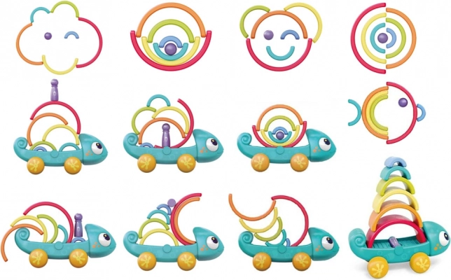 Ο χαμαιλέοντας υποστηρίζει παιχνίδι έλξης και συναρμολόγησης, όπου κάθε στοιχείο αλληλεπίδρασης ενισχύει τις δεξιότητες του παιδιού.