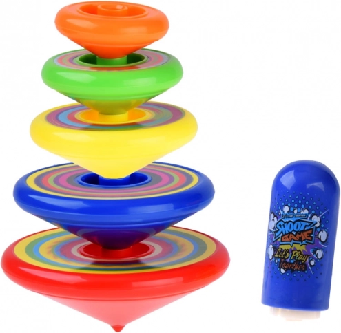 Αυτό το πολύχρωμο πυραμιδωτό σετ σβούρων έχει σχεδιαστεί για παιδιά διαφόρων ηλικιών. Με τη βοήθεια της πρακτικής λαβής (launcher), οι σβούρες τίθενται εύκολα σε περιστροφή, εξασφαλίζοντας ομαλή και ελκυστική κίνηση σε τραπέζι ή δάπεδο. Το παιχνίδι υποστηρίζει τον οπτικοκινητικό συντονισμό, την υπομονή και τη συγκέντρωση.