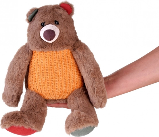 Το χαριτωμένο λούτρινο αρκουδάκι Θεόδωρος είναι ο ιδανικός σύντροφος για μικρά και μεγάλα παιδιά. Αυτό το μαλακό καφέ αρκουδάκι είναι τέλειο για αγκαλιά και χαρίζει αίσθηση άνεσης και ασφάλειας. Τα έντονα χρώματά του – το πορτοκαλί πλεκτό πουλόβερ, τα πράσινα και κόκκινα αυτάκια και πατουσάκια – δίνουν στο παιχνίδι μια χαρούμενη εμφάνιση.
