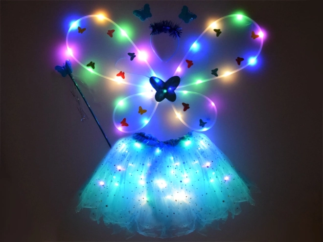 Αυτή η υπέροχη στολή νεράιδας σε μπλε χρώμα θα χαρίσει χαρά σε κάθε μικρό κορίτσι. Η στολή περιλαμβάνει τιλουένια φούστα με LED φώτα, φτερά, στεφανάκι και μαγικό ραβδί, προσφέροντας μια μαγική εμπειρία για κάθε περίσταση.