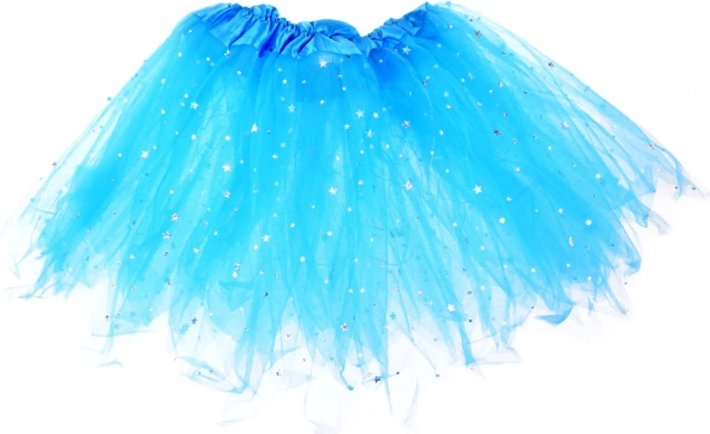 - Φωτεινή μπλε τούλινη φούστα καλυμμένη με μικρά ασημένια αστέρια