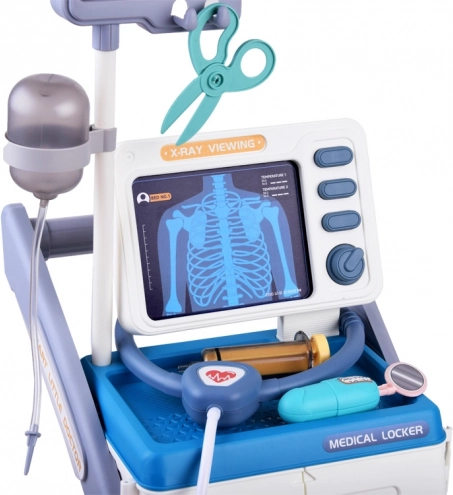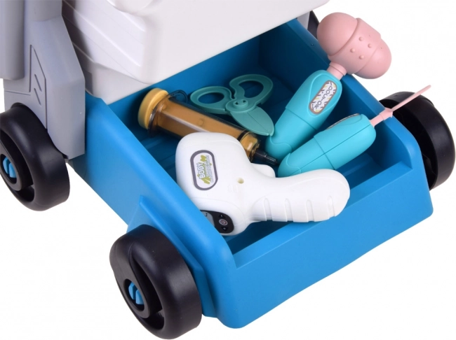 Χάρη στους τροχούς, τη λαβή και το ντουλάπι που κλείνει με συρτάρι, οι μικροί γιατροί έχουν τα πάντα στο χέρι και τα εργαλεία πάντα στη θέση τους.