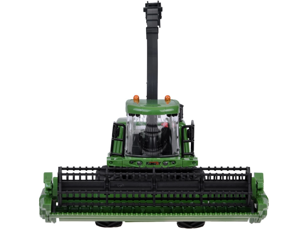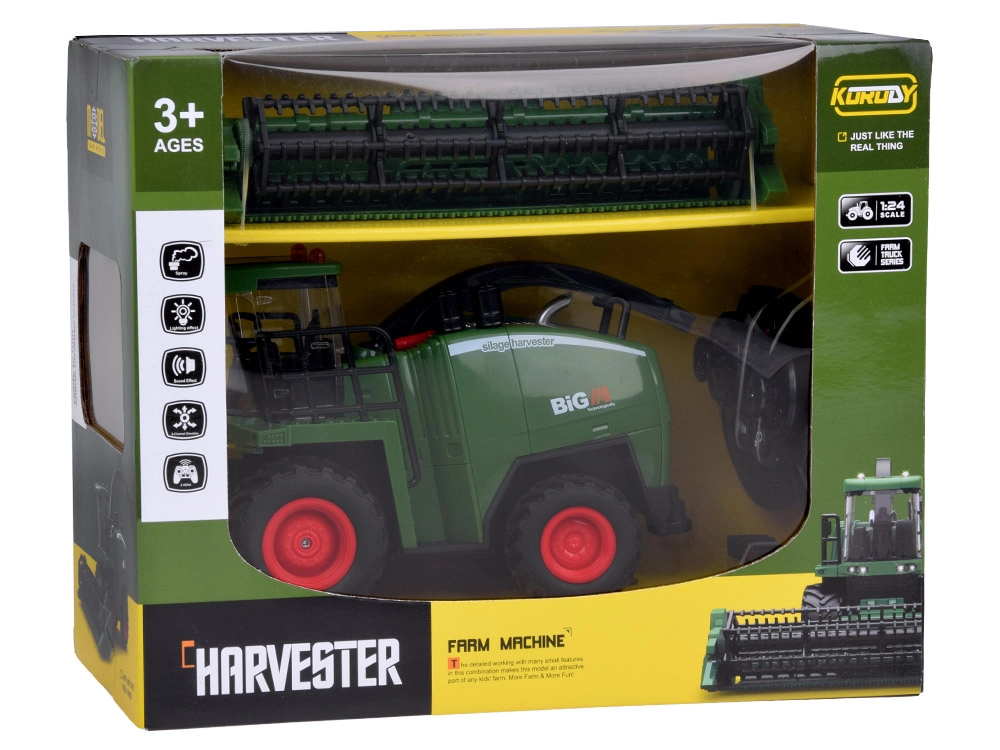 Αυτό το λεπτομερές τηλεκατευθυνόμενο θεριζοαλωνιστικό προσφέρει στα παιδιά αυθεντική εμπειρία συγκομιδής. Με την εκκίνηση θα ακούσετε εκκίνηση και ρελαντί κινητήρα, κατά την κίνηση προς τα εμπρός ανάβουν τα μπροστινά φώτα και ο φάρος, ενώ στην όπισθεν ακούγεται σήμα και τα φώτα αναβοσβήνουν. Με ένα μόνο κουμπί μπορείτε να απενεργοποιήσετε τα φωτεινά και ηχητικά εφέ.