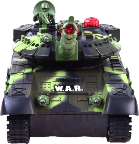 Απολαύστε δυναμικές μάχες με το RC άρμα σε δασική παραλλαγή. Το μοντέλο πραγματοποιεί κίνηση εμπρός/πίσω, περιστροφή επί τόπου και διαθέτει περιστρεφόμενο πυργίσκο 180° προς κάθε πλευρά (συνολικά 360° κάλυψη). Με επιτυχημένο χτύπημα, οι ενδείξεις κατάστασης μάχης ανάβουν/σβήνουν και το άρμα προσομοιώνει ρεαλιστική ανάκρουση, ενισχύοντας την αίσθηση πραγματικού πεδίου μάχης.
