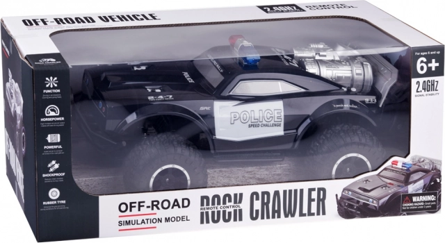 Το σετ περιλαμβάνει αστυνομικό monster truck, τηλεχειριστήριο συχνότητας 2,4 GHz, μπαταρία 500mAh 7,4V και φορτιστή USB.
