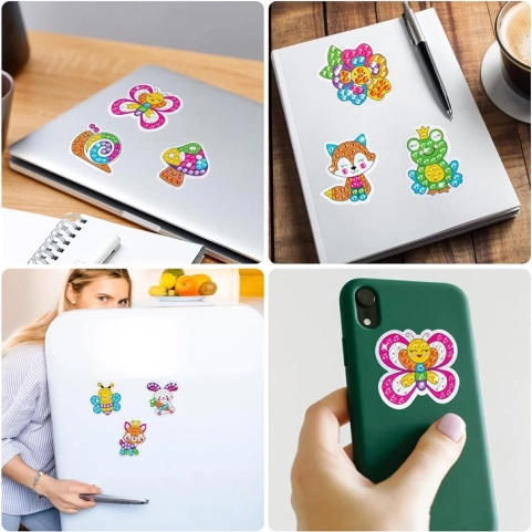 Τα πολύχρωμα και λαμπερά αυτοκόλλητα μπορούν να χρησιμοποιηθούν σε διάφορα αντικείμενα, όπως φορητούς υπολογιστές, ψυγεία ή θήκες κινητών.