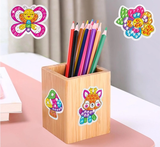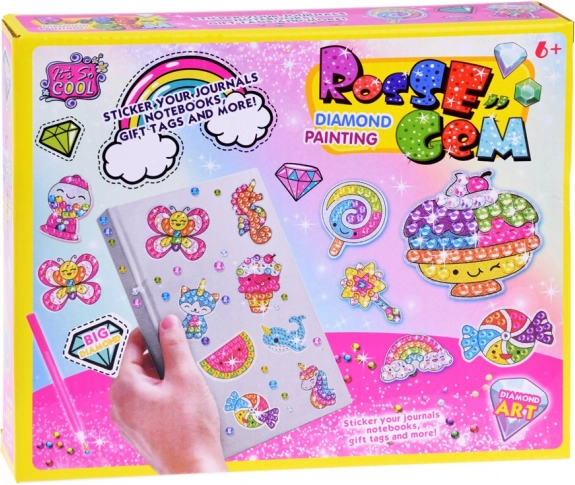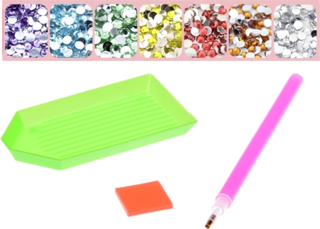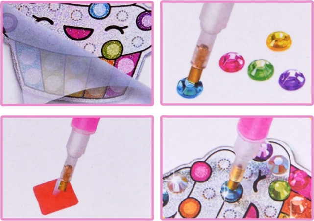 Αυτό το σετ επιτρέπει τη δημιουργία 12 υπέροχων αυτοκόλλητων με λαμπερά διαμαντάκια. Αρκεί να επιλέξετε το σωστό χρώμα και με τον ειδικό εφαρμοστή να τοποθετήσετε τα κομμάτια στο αυτοκόλλητο καλούπι. Το αποτέλεσμα είναι μια όμορφη και πολύχρωμη διακόσμηση.