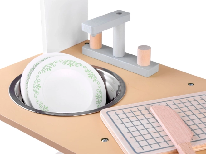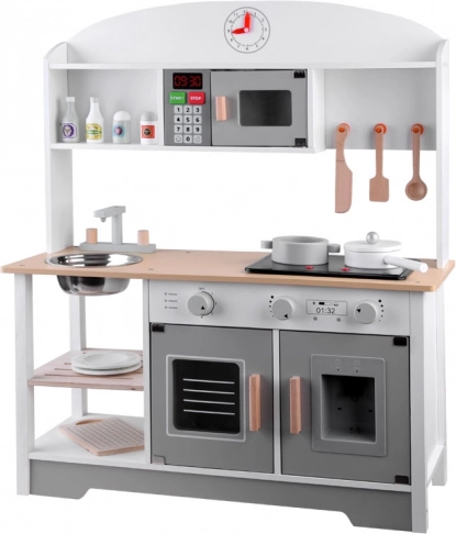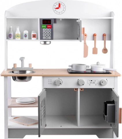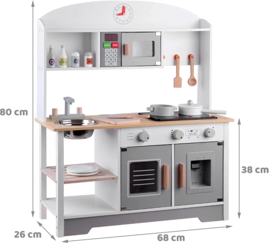Αυτή η παιδική κουζίνα έχει καλαίσθητη κατασκευή και προσφέρει όχι μόνο εξαιρετική διασκέδαση, αλλά συμβάλλει επίσης στην ανάπτυξη του παιδιού. Τα παιδιά λατρεύουν να μιμούνται τους ενήλικες και αυτή η κουζίνα τους επιτρέπει να παίζουν μαγείρεμα, καθάρισμα και άλλες δραστηριότητες που σχετίζονται με τη λειτουργία του σπιτιού.