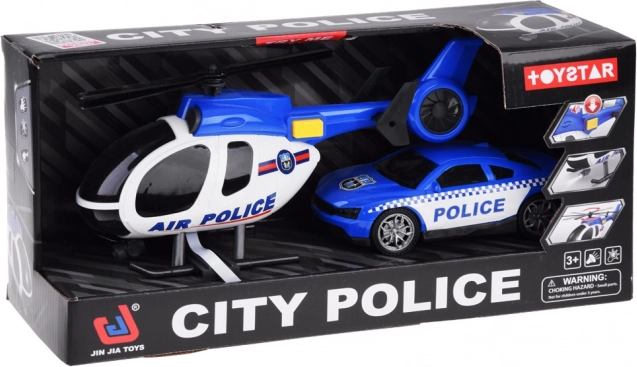 Το Σετ Αστυνομίας προσφέρει εξαιρετική διασκέδαση για κάθε μικρό διοικητή αστυνομικών επιχειρήσεων. Το αυτοκινητάκι και το ελικόπτερο είναι κατασκευασμένα από ποιοτικό πλαστικό και προσφέρουν αντοχή ακόμα και σε εντατικό παιχνίδι. Το σετ είναι ιδανικό για δημιουργικό παιχνίδι και ενισχύει τη φαντασία των παιδιών.