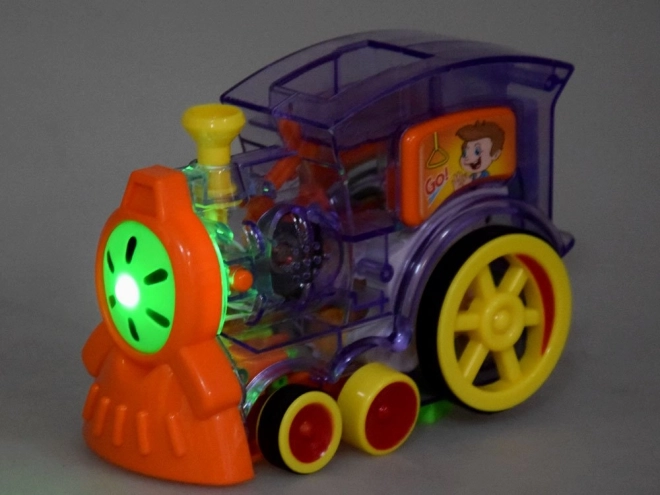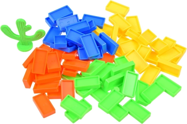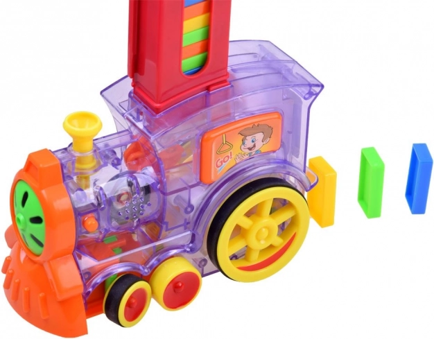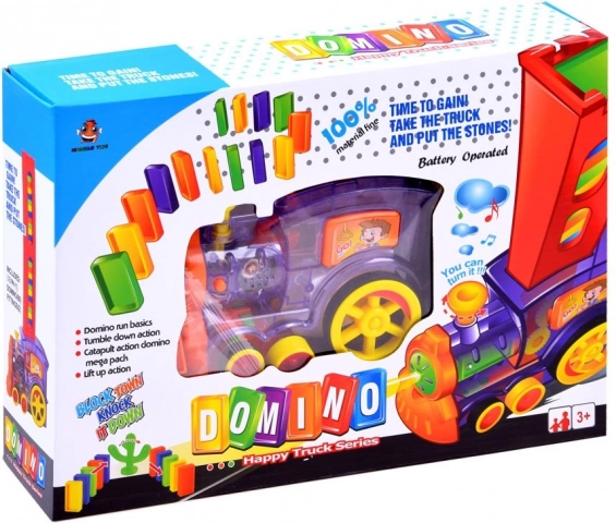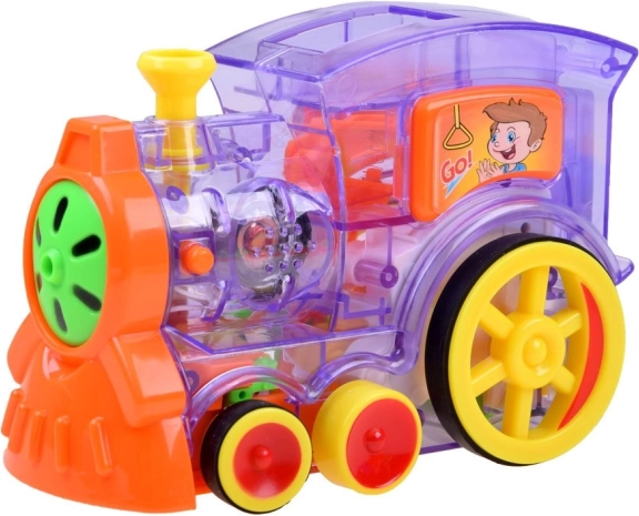 Το σετ περιλαμβάνει 80 πολύχρωμα κομμάτια ντόμινο, τροφοδότη για εύκολο γέμισμα, διακοσμητικό σύνδεσμο κάκτου και το ίδιο το τρενάκι με διαφανή στοιχεία που αποκαλύπτουν τον μηχανισμό του. Το σετ ενισχύει τη λεπτή κινητικότητα, την υπομονή και την αντίληψη του χώρου – ιδανικό για ατομικό αλλά και ομαδικό παιχνίδι.