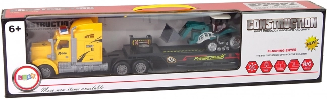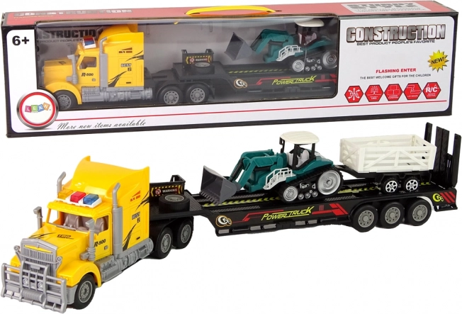 Ο ελκυστήρας με τον επικαθήμενο επιτρέπει στους μικρούς κατασκευαστές να μεταφέρουν μηχανήματα και υλικά όπως στην πραγματικότητα. Το φορτηγό ελέγχεται με τηλεχειριστήριο, ώστε να ελίσσεται εύκολα εμπρός, πίσω και να στρίβει, ενώ τα LED φώτα στην οροφή προσθέτουν εντυπωσιακό εφέ στην κίνηση. Ο ερπυστριοφόρος εκσκαφέας με αποσπώμενο ρυμουλκούμενο συμπληρώνει άψογα τα σενάρια κατασκευών και διευρύνει τις δυνατότητες παιχνιδιού.