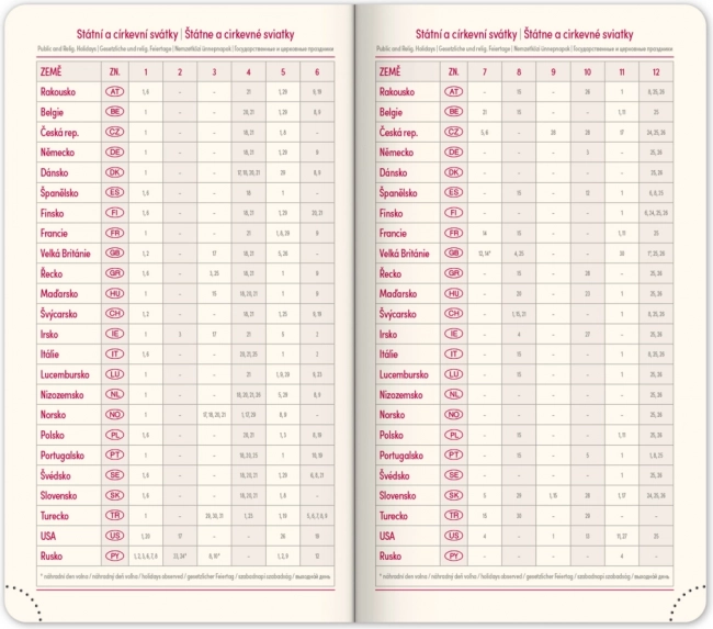 - Εργασιακός προγραμματιστής και επισκόπηση των εορτών στην Τσεχία και τη Σλοβακία καθώς και διεθνών εορτών.