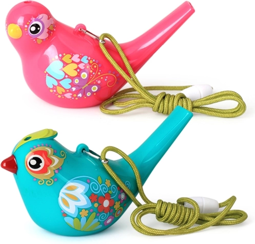 Αυτή η υδάτινη σφυρίχτρα σε σχήμα πουλιού είναι ελαφριά, ανθεκτική και ιδανική για παιδιά. Χωρίς νερό παράγει καθαρό, φωτεινό τόνο· όταν γεμίσει με μικρή ποσότητα νερού, το πουλάκι αρχίζει να τιτιβίζει μελωδικά. Την ένταση και το ύψος του τόνου τα επηρεάζετε εύκολα με το ποσό του νερού και τη δύναμη του φυσήματος.