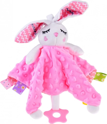 Χαριτωμένη λούτρινη κουβερτούλα-αγκαλίτσα σε σχήμα κουνελιού με απαλή κουβερτούλα, πολύχρωμες ετικέτες και σιλικονούχο μασητικό, που προσφέρει στο μωρό ηρεμία και ασφάλεια. Υποστηρίζει τον αισθητηριακό αναπτυξιακό έλεγχο, προσφέρει ποικίλες υφές, θροΐζοντα και σφυρίζοντα στοιχεία και είναι ιδανική για την κούνια, το καρότσι και το παιδικό καθισματάκι αυτοκινήτου.