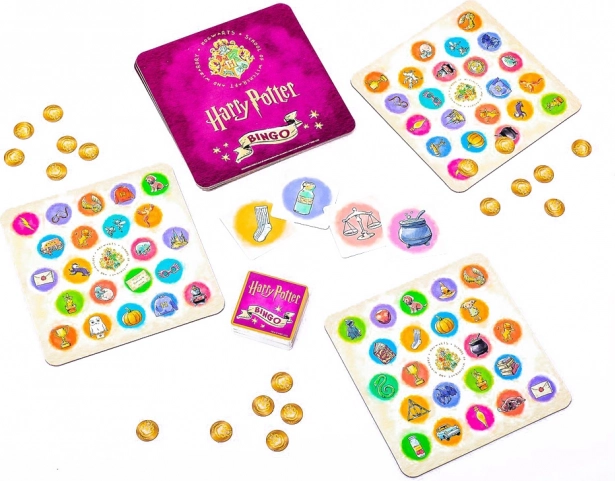 Το Harry Potter bingo είναι ένα ιδανικό επιτραπέζιο κοινωνικό παιχνίδι που φέρνει μια μαγική περιπέτεια για τους θαυμαστές του κόσμου του Hogwarts. Οι παίκτες προσπαθούν να συμπληρώσουν τις bingo κάρτες τους με μαγικά αντικείμενα και χαρακτήρες, εξασφαλίζοντας έτσι τη νίκη. Το παιχνίδι είναι για 2 έως 6 παίκτες και είναι τέλειο για διασκέδαση με φίλους και οικογένεια.