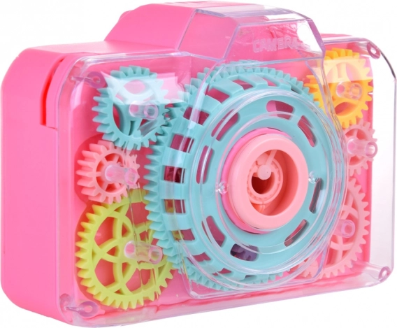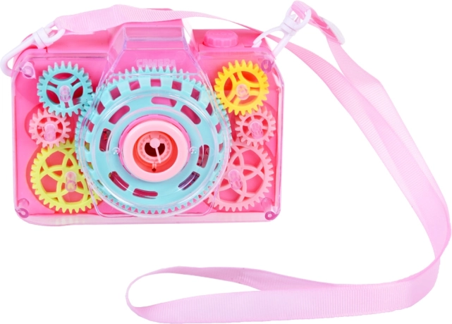 Ανακαλύψτε τη μαγεία των φυσαλίδων με τη παιδική φωτογραφική μηχανή που, με το πάτημα του κλείστρου, δημιουργεί σαπουνόφουσκες, αναπαράγει ρεαλιστικούς ήχους κλείστρου και φωτίζεται με πολύχρωμα φώτα. Χάρη στο διαφανές σώμα, είναι ορατά τα κινούμενα οδοντωτά γρανάζια, προσθέτοντας διασκέδαση και εκπαιδευτική αξία. Η συμπαγής κατασκευή, ο εύκολος χειρισμός και τα ανθεκτικά υλικά εξασφαλίζουν ασφαλές και μακράς διάρκειας παιχνίδι.