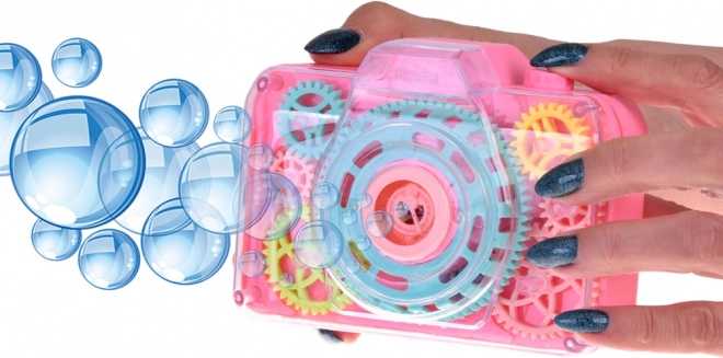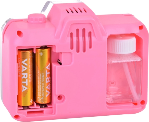 Αυτή η παιχνιδιάρικη φωτογραφική μηχανή με φυσαλίδες προσφέρει στα παιδιά τη μαγική αίσθηση των φυσαλίδων σε συνδυασμό με μια ρεαλιστική εμπειρία φωτογράφισης. Με το πάτημα του κλείστρου ενεργοποιούνται τα φωτεινά εφέ, ο ήχος κλείστρου και από το άνοιγμα βγαίνουν σαπουνόφουσκες, δημιουργώντας μια γοητευτική ατμόσφαιρα για παιχνίδι στο σπίτι ή έξω.