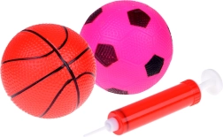 Δύο φουσκωτά μπαλάκια με τρόμπα είναι έτοιμα για ρίψεις και απλά παιχνίδια με μπάλα. Το φτερωτό μπαλάκι εξασκεί την ακρίβεια και τα αντανακλαστικά.