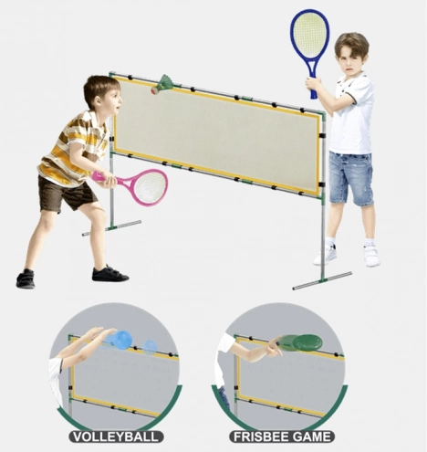 Ανακαλύψτε το ευέλικτο αθλητικό σετ 3 σε 1 που ενισχύει την κίνηση, τον συντονισμό και τη συνεργασία. Χάρη στην ελαφριά κατασκευή, την απλή συναρμολόγηση και τα ζωηρά χρώματα, είναι ιδανικό για παιδιά και ενήλικες. Στήστε το δίχτυ, παίξτε μπάντμιντον, δοκιμάστε βόλεϊ με ελαφριά μπάλα ή απολαύστε παιχνίδι με τον ιπτάμενο δίσκο.