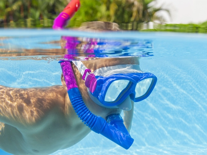 Με αυτό το ελαφρύ και ανθεκτικό σετ, τα παιδιά θα απολαύσουν ώρες διασκέδασης σε πισίνα, λίμνη ή θάλασσα. Η μάσκα, χάρη στο ρυθμιζόμενο λουράκι και το σιλικονούχο στεγανοποιητικό, προσαρμόζεται εύκολα στο σχήμα του προσώπου και προσφέρει καθαρή θέα χάρη στους πολυκαρβονικούς φακούς με UV προστασία. Ο αναπνευστήρας διαθέτει μαλακό σιλικονούχο επιστόμιο για φυσική αναπνοή και προστασία κατά των πιτσιλιών στο επάνω μέρος.