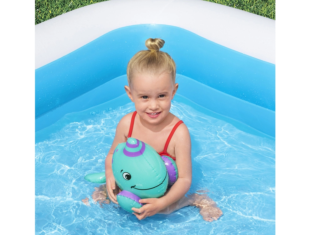 Το φουσκωτό πλάσμα Bestway προσφέρει στα παιδιά διασκέδαση στο μπάνιο ή στις διακοπές κοντά στο νερό. Ο απλός μηχανισμός φουσκώματος εξασφαλίζει άνεση στη μεταφορά και χρήση οπουδήποτε, χάρη στις compact διαστάσεις. Το παιχνίδι είναι φτιαγμένο από ποιοτικό και ανθεκτικό βινύλιο που εγγυάται μεγάλη διάρκεια ζωής. Το πιάνουν εύκολα ακόμη και τα μικρά παιδικά χέρια, προσφέροντας στα παιδιά ακόμα καλύτερη εμπειρία παιχνιδιού.