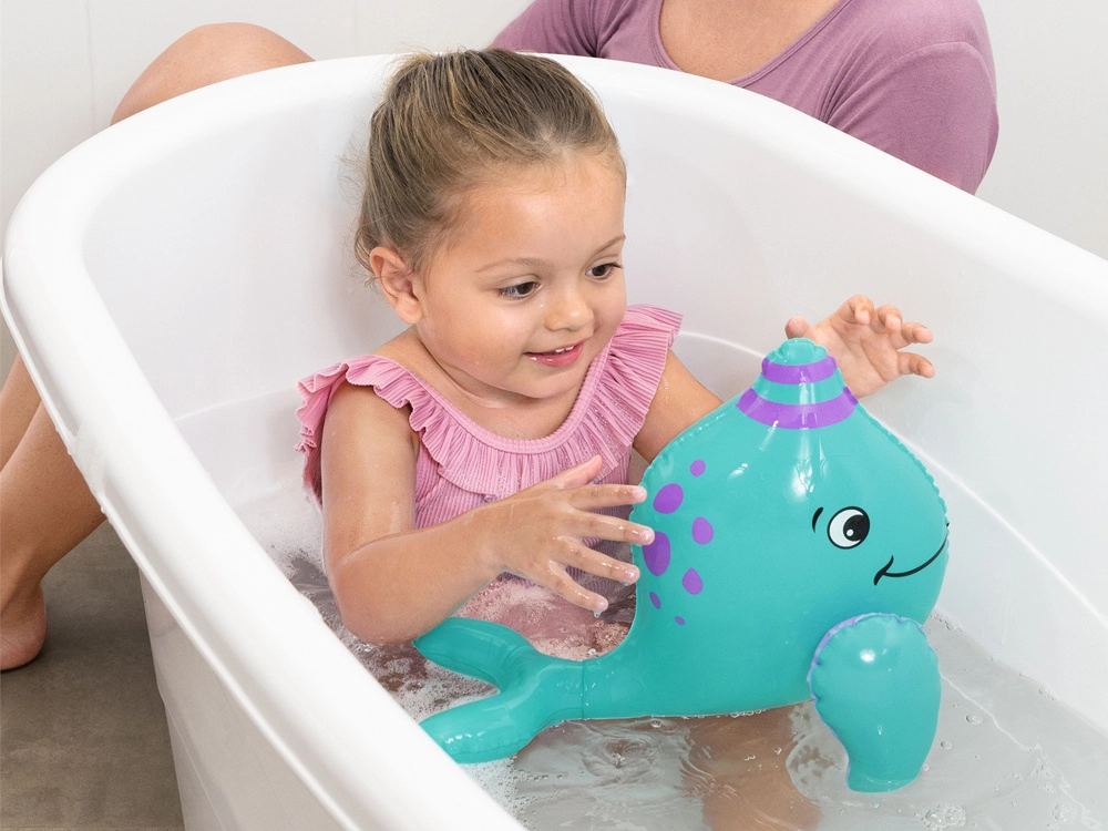 Τα παιδιά βυθίζονται σε έναν κόσμο φαντασίας παίζοντας με αυτό το φουσκωτό πλάσμα κατά τη διάρκεια του μπάνιου.