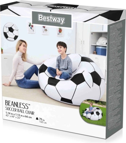 Απολαύστε άνεση και στυλ με αυτή τη μοναδική φουσκωτή πολυθρόνα, που συνδυάζει την πρακτική λειτουργικότητα με μοντέρνο σχεδιασμό εμπνευσμένο από το ποδόσφαιρο. Είναι ιδανική για παιδικό δωμάτιο ή κήπο.