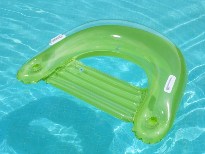 Η κομψή πράσινη φουσκωτή πολυθρόνα νερού προσφέρει μέγιστη άνεση για ηλιοθεραπεία και ξεκούραση στην επιφάνεια. Χάρη στη διθάλαμη κατασκευή είναι σταθερή και διατηρεί το σχήμα της, ενώ η ψηλή πλάτη στηρίζει την πλάτη. Το ανθεκτικό υλικό PVC αντέχει στη θερινή χρήση και τα υδάτινα παιχνίδια.