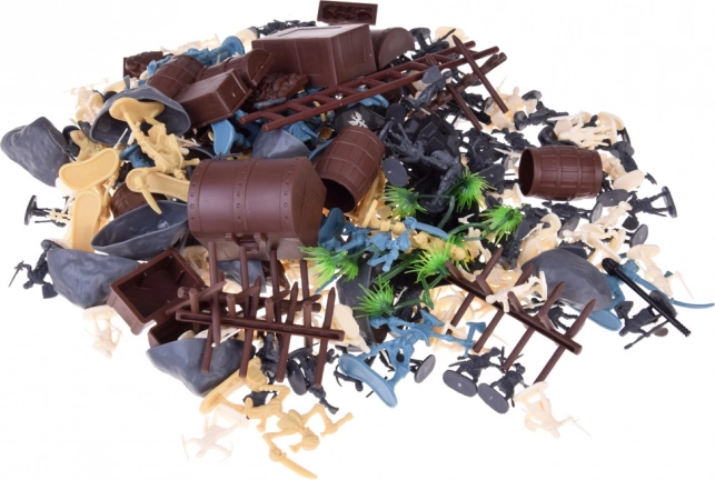 Στη συσκευασία θα βρείτε πλούσια αξεσουάρ: σεντούκια θησαυρών, βαρέλια, σκάλα, σημαίες, εστίες φωτιάς, βράχους και άλλα στοιχεία περιβάλλοντος, χάρη στα οποία θα δημιουργήσετε εντυπωσιακές σκηνές. Οι μικρές και μεγαλύτερες φιγούρες (περίπου 3 και 6 εκ.) είναι ιδανικές για παιδικά χέρια και συνδυάζονται εύκολα.