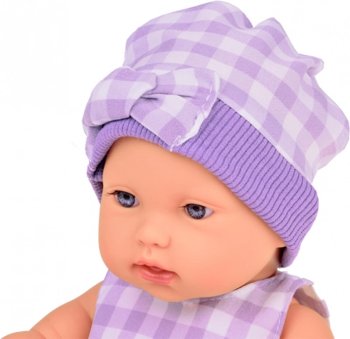 Το σετ είναι χρωματικά εναρμονισμένο σε κομψό γκρι με διακριτικό καρό: η κούκλα φορά σκουφάκι, φορεματάκι και καλτσάκια, το λούτρινο κουνελάκι έχει φουστίτσα στο ίδιο στυλ και το υφασμάτινο καλαθάκι ολοκληρώνει όμορφα το σύνολο. Χάρη στα κινούμενα άκρα, η κούκλα μπορεί να καθίσει ή να ξαπλώσει εύκολα, διευρύνοντας τις δυνατότητες παιχνιδιού.