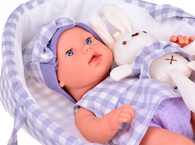 Αυτή η λεπτομερώς κατασκευασμένη κούκλα μωρό υποστηρίζει το δημιουργικό παιχνίδι, την ανάπτυξη της φαντασίας και των ενσυναισθητικών δεξιοτήτων. Τα απαλά χαρακτηριστικά του προσώπου και οι ρεαλιστικές αναλογίες ενισχύουν το αίσθημα φροντίδας ενός πραγματικού μωρού. Το ταιριαστό καλαθάκι με χερούλια διευκολύνει τη μεταφορά και αποθήκευση της κούκλας στο σπίτι και στα ταξίδια.