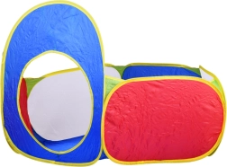 Αυτό το ευέλικτο σετ σκηνών με τούνελ προσφέρει στα παιδιά έναν ασφαλή χώρο για σκαρφάλωμα, κρυφτό και ενεργό παιχνίδι. Η τριγωνική σκηνή διαθέτει στόχο ρίψης με 4 μπαλάκια βέλκρο, η τετράγωνη σκηνή επιτρέπει σύνδεση με τούνελ και το καλάθι για μπαλάκια στη σκηνή-πισίνα ενισχύει την ακρίβεια και τον συντονισμό. Χάρη στα δικτυωτά πάνελ ο χώρος αερίζεται και οι γονείς έχουν ορατότητα.