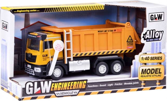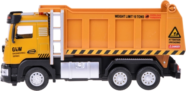 Αυτό το προσεγμένα σχεδιασμένο ανατρεπόμενο φορτηγό θα ενθουσιάσει κάθε παιδί που αγαπά τις κατασκευές και τα εργοταξιακά μηχανήματα. Ο στιβαρός συνδυασμός μετάλλου και πλαστικού, η λειτουργική καρότσα και η ανοιγόμενη καμπίνα προσφέρουν ρεαλιστική εμπειρία παιχνιδιού στο σπίτι ή στην άμμο. Τα ενσωματωμένα φως και ήχος (κινητήρας, όπισθεν, κόρνα) ενισχύουν την ατμόσφαιρα πραγματικού εργοταξίου.