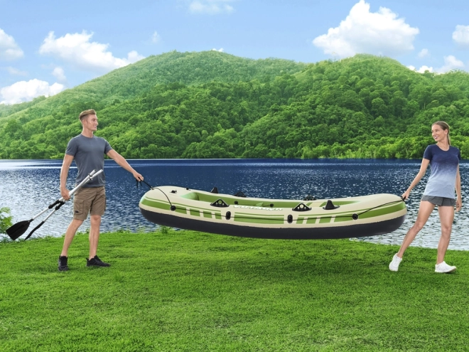 Κατασκευασμένη από ποιοτικό υλικό Inflata-Shield, που εξασφαλίζει αντοχή και αδιαβροχοποίηση. Η λέμβος περιλαμβάνει λειτουργικά στοιχεία, όπως βάσεις για κουπιά και χειρολαβές για εύκολη μεταφορά.