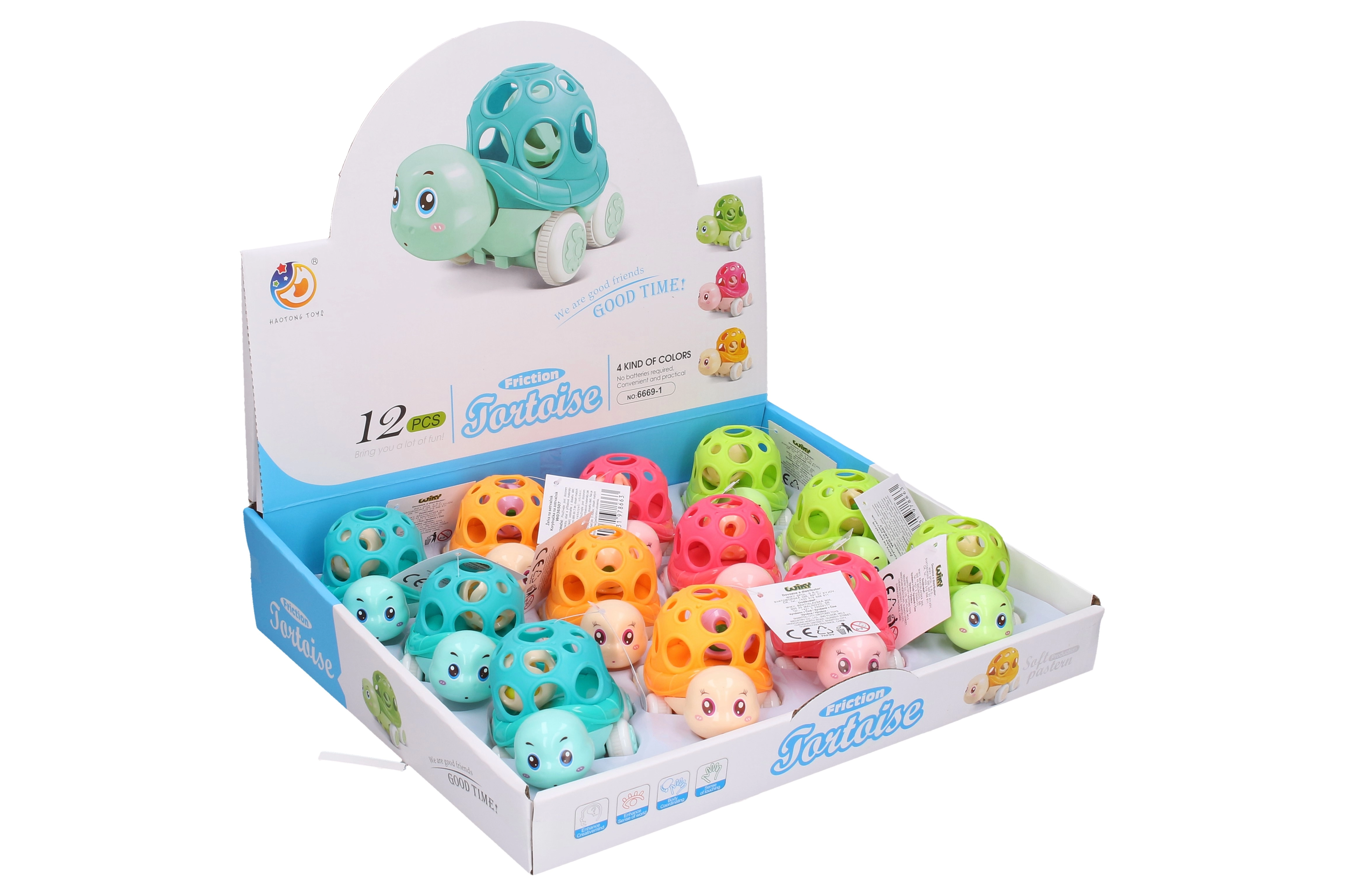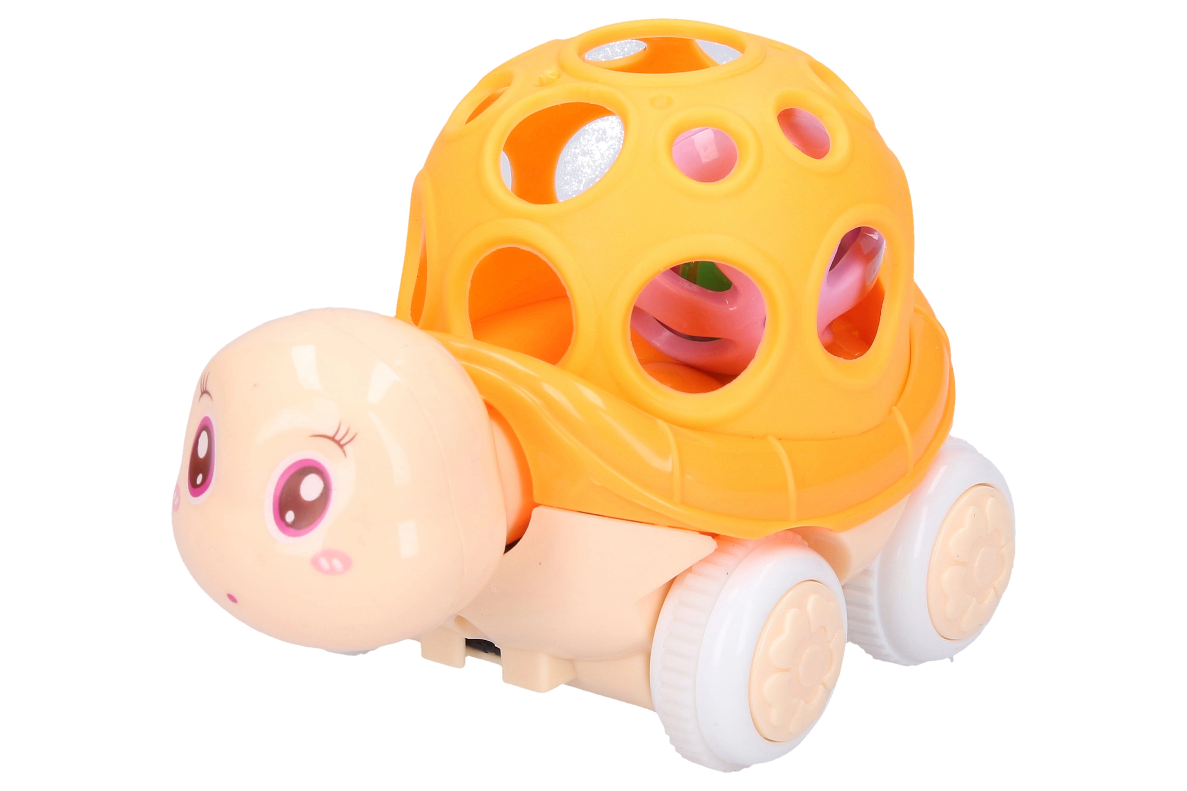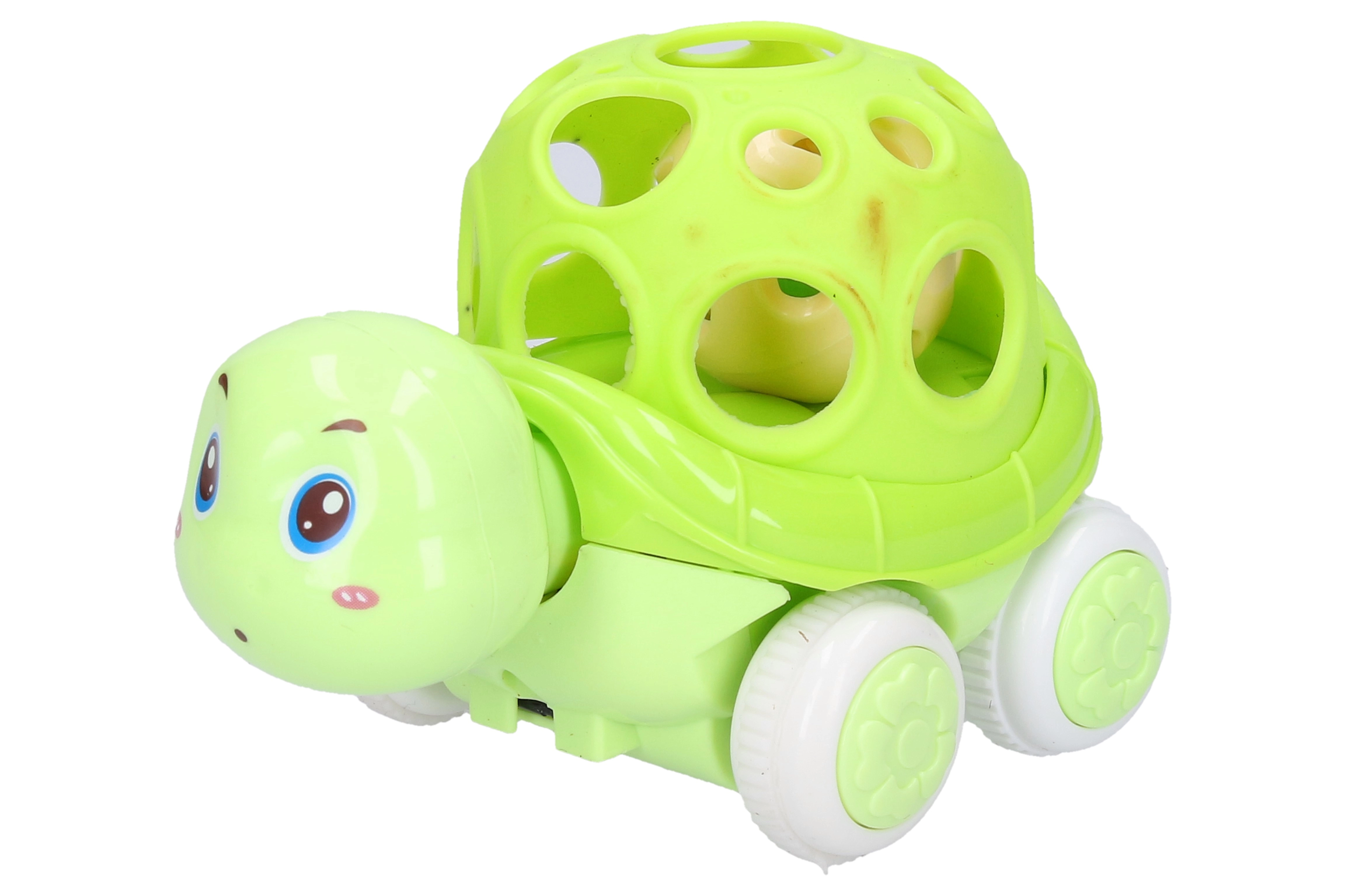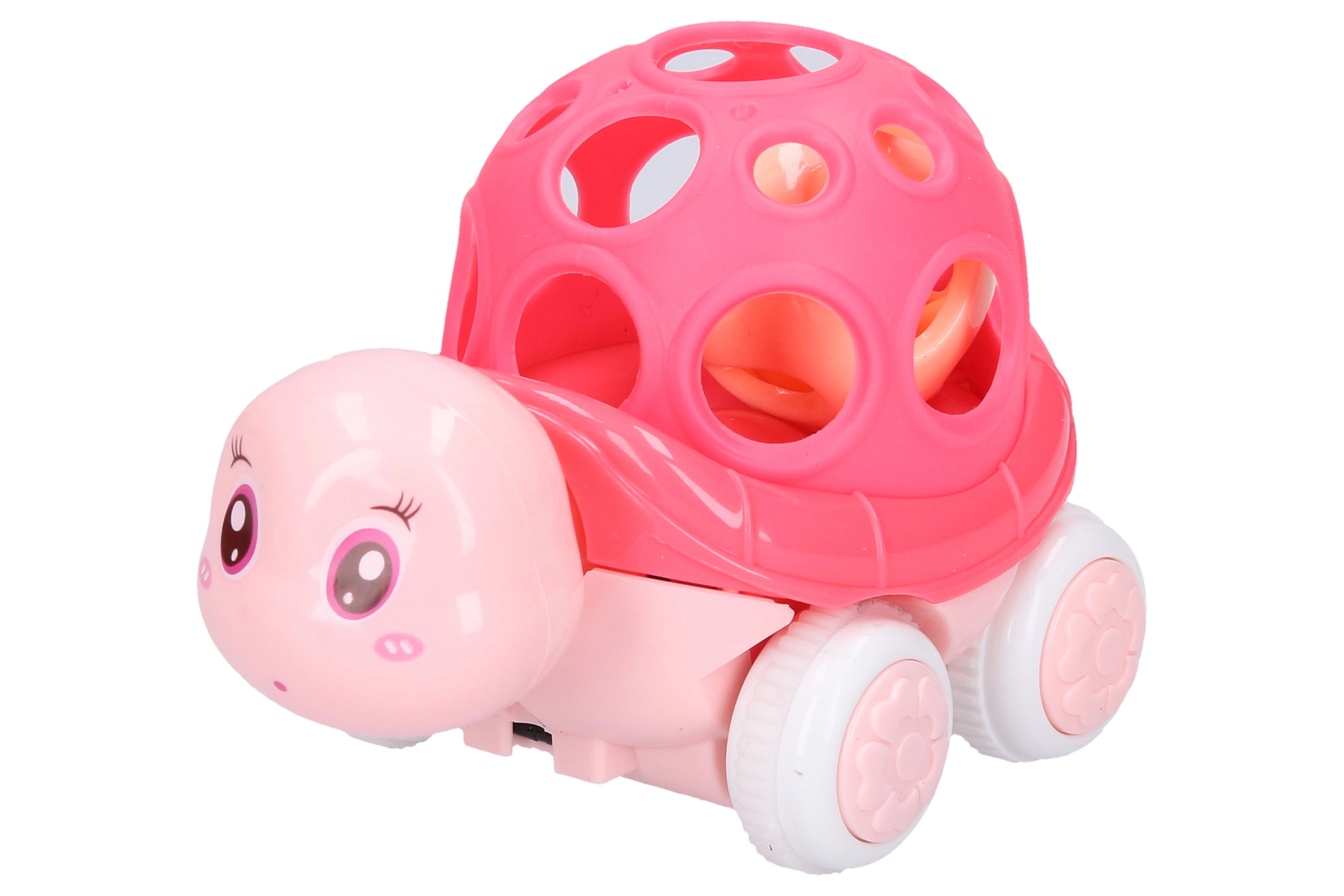Τέσσερις χρωματικές παραλλαγές που θα μαγέψουν τα παιδιά: μπλε, πορτοκαλί, πράσινο και ροζ. Η χελώνα είναι κατασκευασμένη από ανθεκτικό πλαστικό, γεγονός που εξασφαλίζει μεγάλη διάρκεια ζωής. Χάρη στον αδρανειακό μηχανισμό κινείται εύκολα στο πάτωμα, προσφέροντας στα παιδιά επιπλέον διασκέδαση.