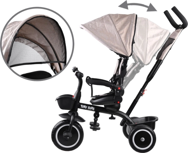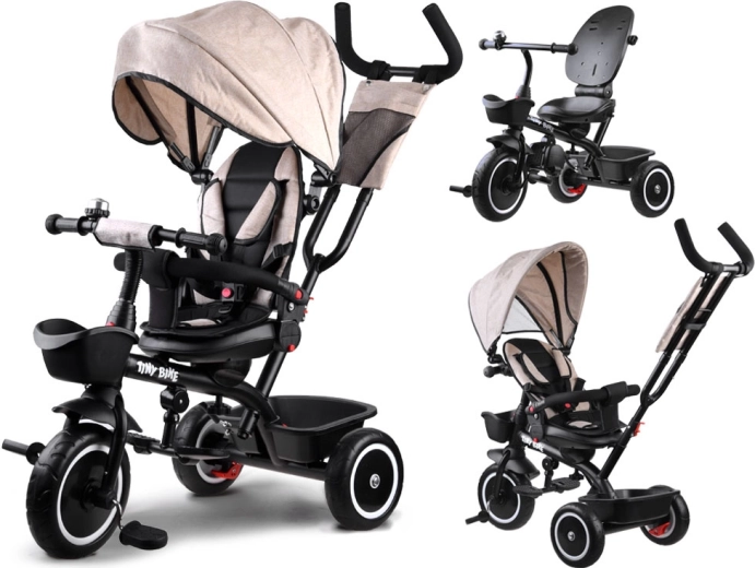 Πρακτικό παιδικό τρίκυκλο 3-σε-1 TINY BIKE που «μεγαλώνει» με το παιδί σας από 6 μηνών έως περίπου 5 ετών. Προσφέρει περιστρεφόμενο και ρυθμιζόμενο κάθισμα, ηλιοπροστατευτική τέντα με δίχτυ, ζώνες ασφαλείας 5 σημείων, γονεϊκό έλεγχο με ρυθμιζόμενο ύψος και αθόρυβα, χωρίς συντήρηση ελαστικά από αφρό EVA. Χάρη στο ισχυρό ατσάλινο πλαίσιο και τον πλούσιο εξοπλισμό, είναι ιδανικό για καθημερινές βόλτες.
