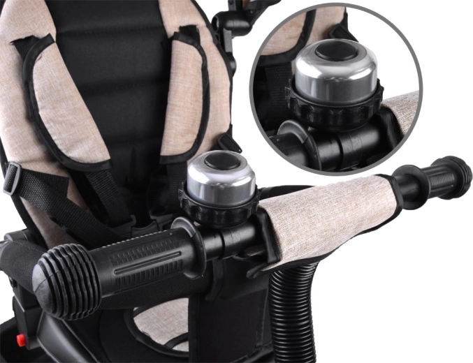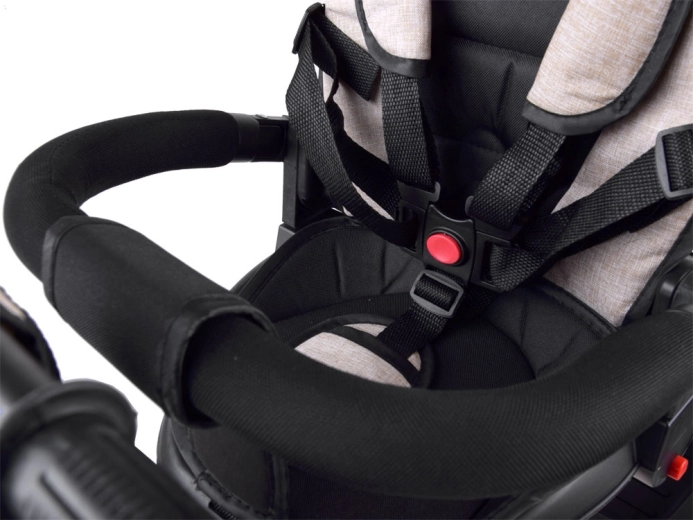 Αυτό το πολυλειτουργικό τρίκυκλο 3-σε-1 συνδυάζει όχημα με γονεϊκή καθοδήγηση, άνετη λειτουργία τύπου καροτσιού και αυτόνομο τρίκυκλο για τις πρώτες βόλτες. Το περιστρεφόμενο κάθισμα επιτρέπει στο παιδί να βλέπει τον γονέα ή την πορεία, ενώ η τέντα με αεριζόμενο δίχτυ προστατεύει από τον ήλιο, τον άνεμο και το ελαφρύ ψιλόβροχο, διατηρώντας ευχάριστο κλίμα. Οι ζώνες 5 σημείων, η μαλακή αφαιρούμενη μπάρα και το ενισχυμένο κάλυμμα με εύκολη συντήρηση φροντίζουν για άνεση και ασφάλεια.